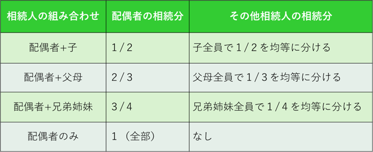 配偶者は常に相続人となりますが、その割合は一緒に相続する相手によって異なります。