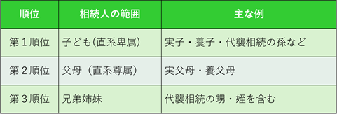 血族相続人は順位があり、優先順位の高い人がいる場合は、それ以下の人は相続しません。