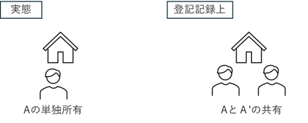登記官は、名義人の住所・氏名で人物を特定しているため、住所が異なれば別の人物と判断します。登記簿には、A(新住所)とA’(旧住所)の共有として表示されるのです。